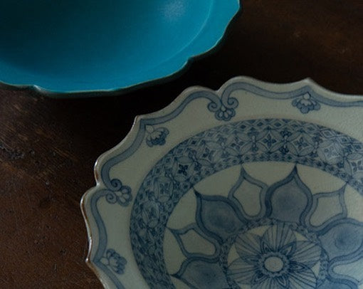 アラベスク紋様 呉須絵 大皿
